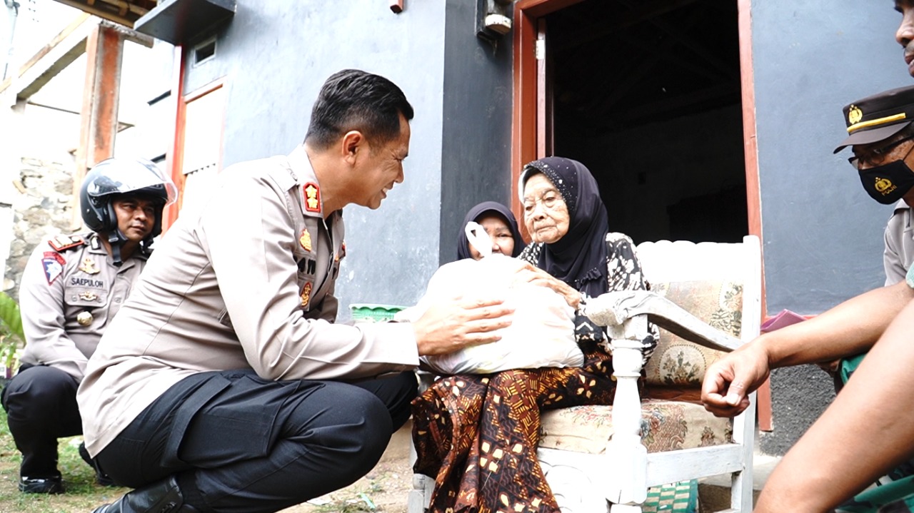 Peduli Sesama, Kapolres Banjar Gunakan Sepeda Motor Bakti Sosial Bagikan Sembako Kepada Kaum Jompo