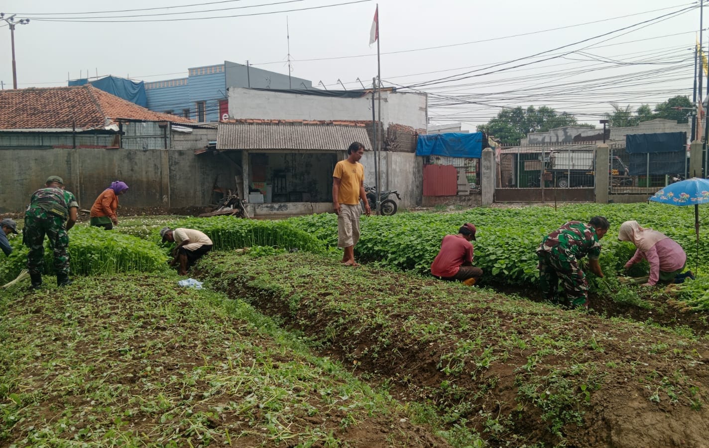 Babelan, Buser Indonesia || kegiatan Babinsa di wilayah Koramil 04 Babelan Kodim 0509 Kab Bekasi, Kecamatan Babelan mendampingi kelompok tani membantu panen sayur bayam milik Sulis, luas lahan 150 meter di Kampung Babelan Desa Babelan Kota , Kecamatan Babelan, Kabupaten Bekasi,Selasa (2/1/24).