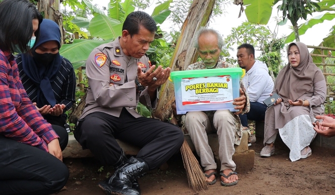 Mendapat informasi tersebut Kapolres Banjar AKBP Bayu Catur Prabowo, S.H.,S.I.K.,M.M. melalui Kabag Ren Polres Banjar Kompol Muslim bersama Polwan Polres Banjar didampingi Bhabinkamtibmas serta perangkat Kelurahan Mekarsari berkunjung ke rumah beliau. (24/10/2022).