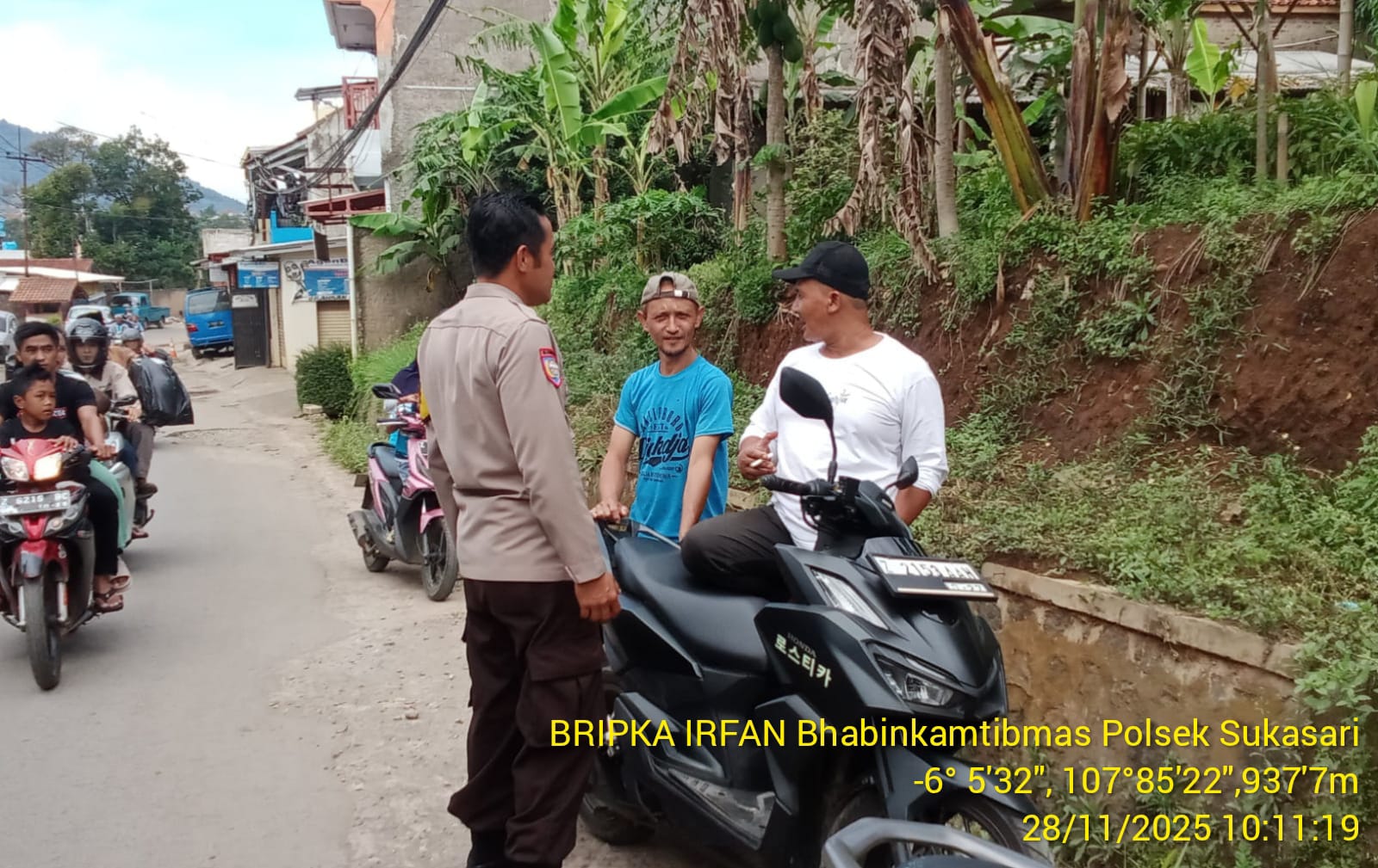 Apabila ada informasi atau kejadian yang berpotensi menjadi gangguan Kamtibmas, jangan ragu untuk menginformasikan kepada petugas Bhabinkamtibmas atau melalui call center Kepolisian 110. Pungkas Bripka Irpan Sopian.ika