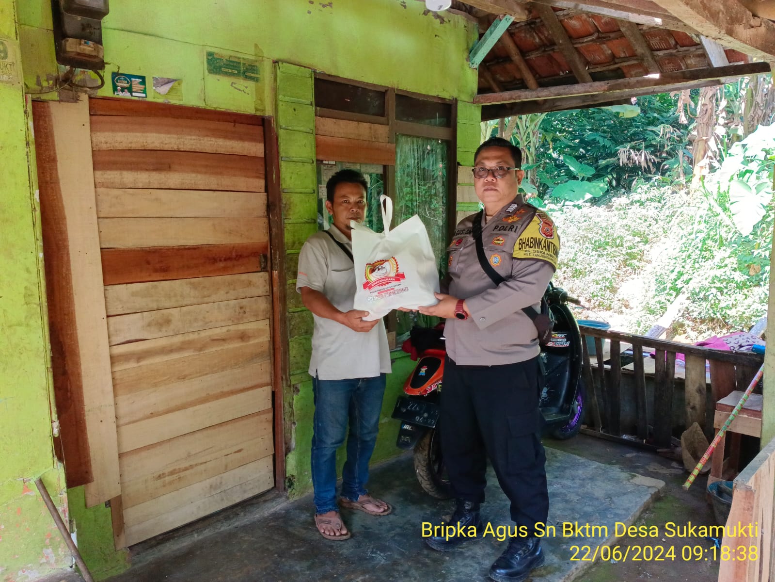 Sumedang ||BI Dalam rangka memperingati Hari Bhayangkara ke-78, Bripka Agus Sukmana Bktm Desa Tanjungwangi dan Sukamukti melaksnakan kegiatan bakti sosial dengan membagikan paket sembako kepada warga kurang mampu di wilayah Desa Tanjungwangi dan Sukamukti. Sabtu (22/06/2024).