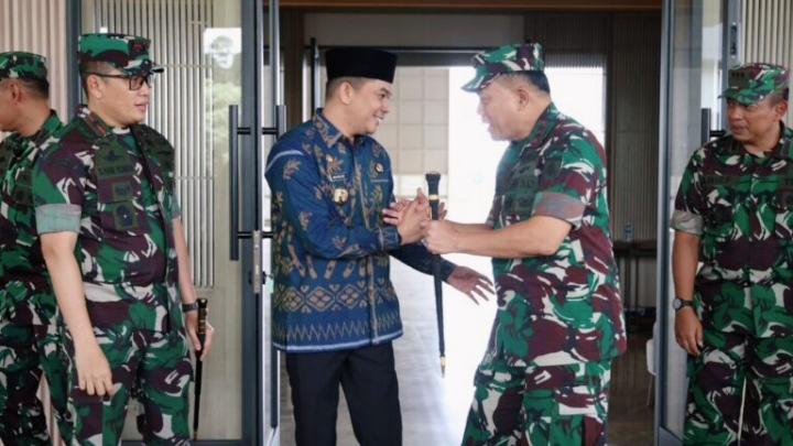 Bupati Tanah Bumbu, Andi Rudi Latif, menyambut kedatangan Panglima Komando Daerah Militer (Pangdam) XXII/Tambun Bungai, Mayjen TNI Zainul Arifin, di Bandara Bersujud, Rabu (5/11/2025).