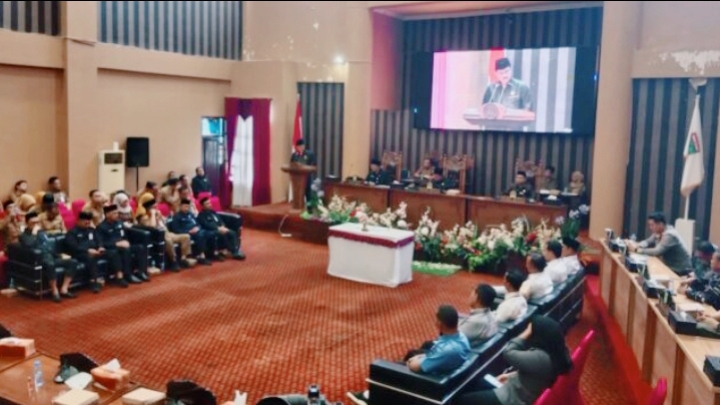 Bupati Andi Rudi Latif dalam sambutannya dibacakan Pj. Sekda Yulian Herawati mengatakan atas nama Pemerintah Kabupaten Tanah Bumbu menyampaikan apresiasi dan penghargaan yang setinggi-tingginya kepada seluruh unsur pimpinan dan anggota DPRD Kabupaten Tanah Bumbu.
