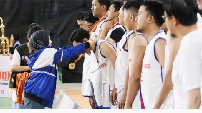 Bupati Tanah Bumbu Andi Rudi Latif melalui Sekretaris Daerah (Sekda) Yulian Herawati menutup secara resmi Kejurkab Basketball League Kabupaten Tanah Bumbu Tahun 2025 di Lapangan Basket Hutan Kota Batulicin, Sabtu (4/10/2025).