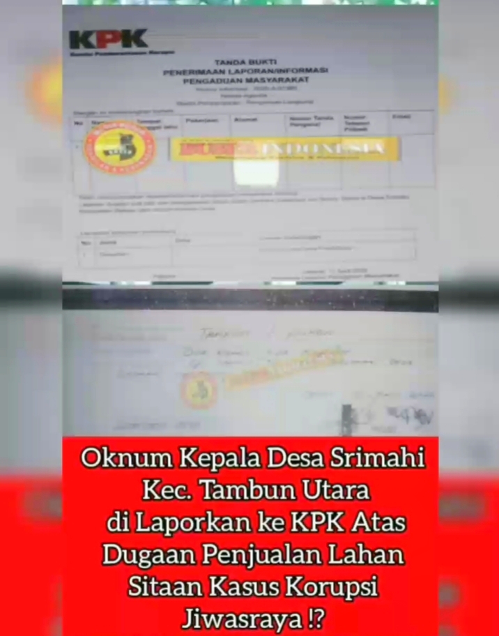 JAKARTA, Buser Indonesia – Terkait adanya dugaan penjualan dan dugaan penggelapan aset negara berupa lahan sitaan negara atas perkara Korupsi Jiwasraya dengan terpidana Benny Tjokro yang terletak di Desa Srimahi, Kecamatan Tambun Utara, Kabupaten Bekasi, telah dilaporkan ke Komisi Pemberantasan Korupsi (KPK ) pada Kamis (17/4/2025).