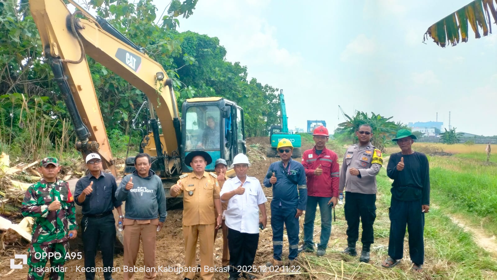 BEKASI, Buser Indonesia || Kepala Desa Muara Bakti, H. Asmawi, meninjau langsung pelaksanaan pembangunan tanggul di sepanjang aliran Kali Cikarang Bekasi Laut (CBL) yang berlokasi di Kampung Pasar Emas, Kadus 2 B, RT 11/06 pada Selasa (2/12/2025). Peninjauan tersebut turut didampingi Babinsa, Binmaspol, anggota BPD, serta staf desa.
