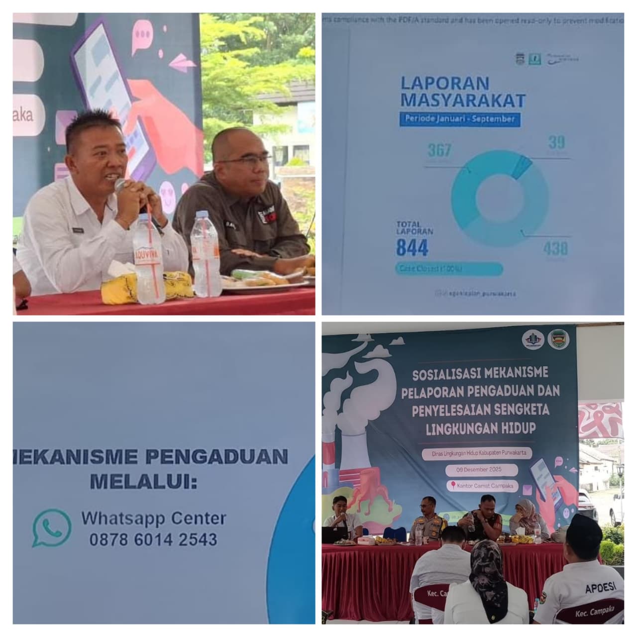 Purwakarta || buserindonews.com- Guna memperkuat pemahaman terkait mekanisme pengaduan dugaan pencemaran dan sengketa lingkungan, serta membangun kolaborasi lintas sektor dalam menjaga kualitas lingkungan di Kabupaten Purwakarta, Dinas Lingkungan Hidup (DLH) setempat menggelar Sosialisasi Mekanisme Pelaporan Pengaduan dan Penyelesaian Sengketa Lingkungan Hidup, di Tribun Kantor Kecamatan Campaka, Purwakarta, Jawa Barat,Selasa (9/12/2025)
