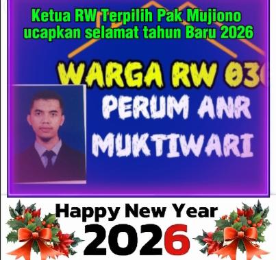 “Selamat Tahun Baru 2026. Di tahun yang baru ini, saya berharap kerukunan antarwarga di lingkungan RW 030 semakin erat. Mari kita jadikan lingkungan ini sebagai tempat yang nyaman bagi semua dengan semangat gotong royong dan saling peduli,” ujar Mujiono.