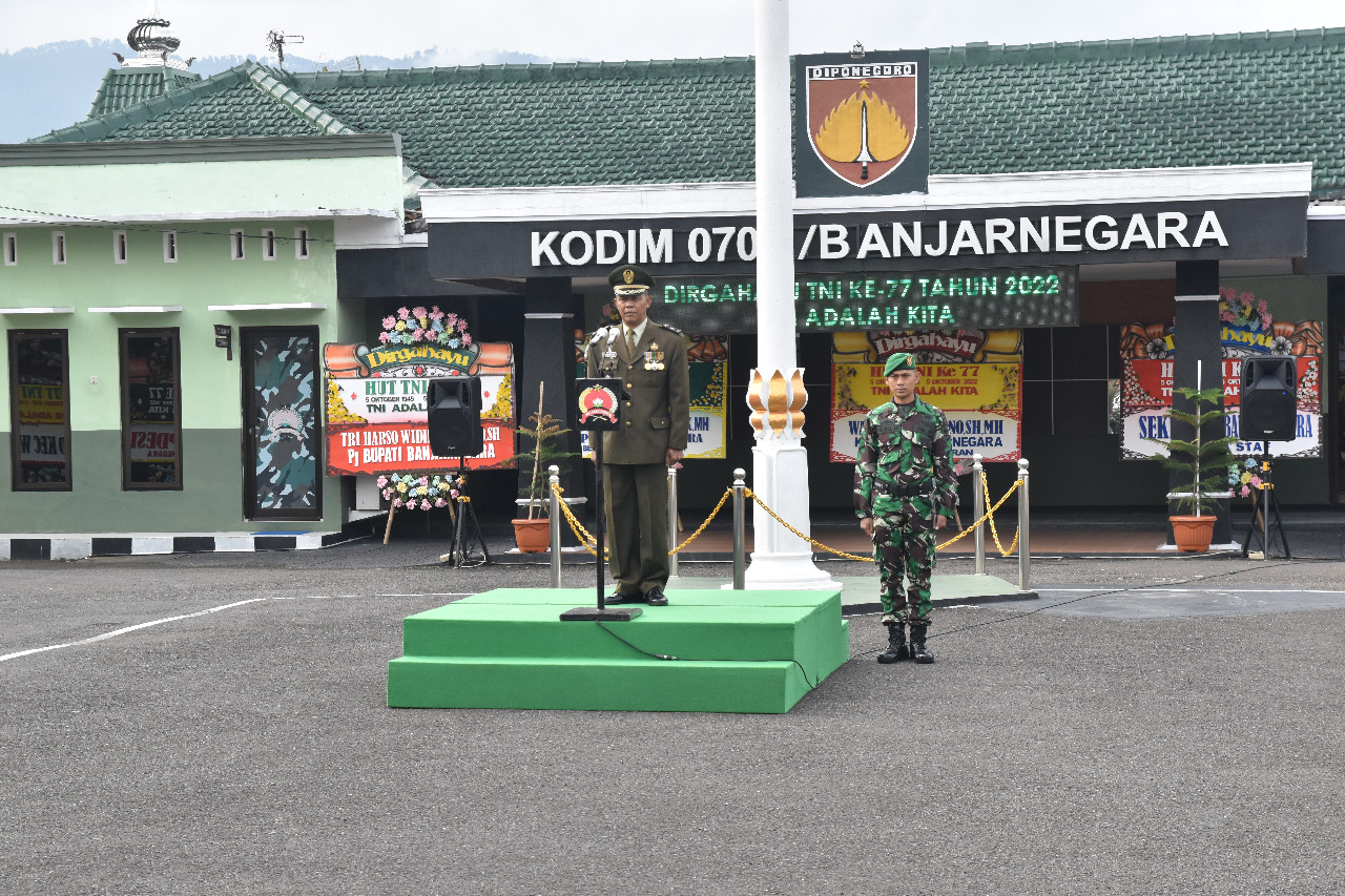 Banjarnegara || buserindonews.com – Kodim 0704/Banjarnegara menggelar Upacara Dirgahayu Tentara Nasional Indonesia ke 77 Tahun 2022. Dengan mengusung tema” TNI Adalah Kita” di lapangan Upacara Makodim. Rabu (05/10/22).