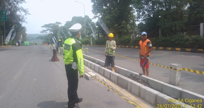 Kapolres Purwakarta, Edwar Zulkarnain melalui Kasatlantas Warjo disela-sela kesibukannya menyampaikan, personel Pos Ciganea melaksanakan kegiatan pengamanan pemasangan median pembatas jalan arah gerbang Jatiluhur.
