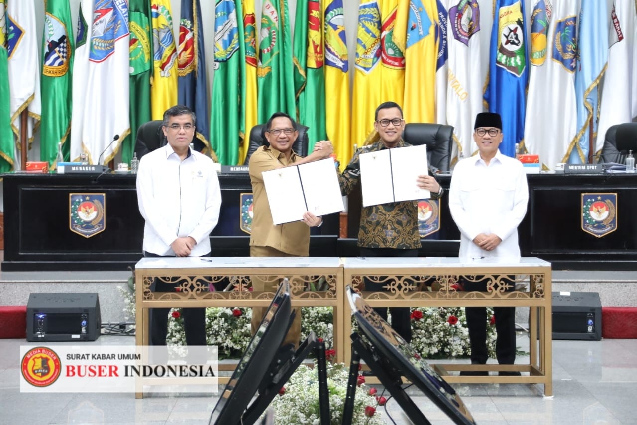 Jakarta || buserindonews.com – Menteri Dalam Negeri (Mendagri) Muhammad Tito Karnavian menandatangani Nota Kesepahaman dan Surat Edaran Bersama (SEB) untuk melindungi pekerja migran. Nota Kesepahaman tersebut ditandatangani Mendagri bersama Menteri Perlindungan Pekerja Migran Indonesia (P2MI)/Kepala Badan Pelindungan Pekerja Migran Indonesia (BP2MI) Abdul Kadir Karding. Sementara SEB ditandatangani Mendagri bersama Menteri P2MI, Menteri Ketenagakerjaan (Menaker) Yassierli, serta Menteri Desa dan Pembangunan Daerah Tertinggal (Mendes PDT) Yandri Susanto.