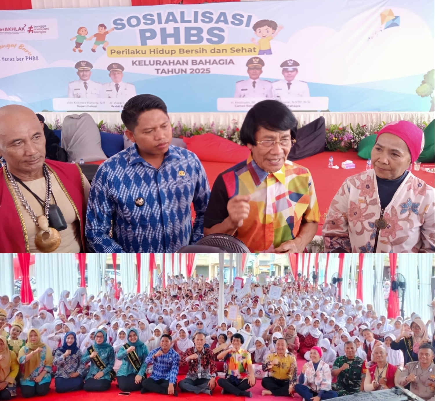 BEKASI, Buser indonesia ||Sosialisasi Perilaku Hidup Bersih dan Sehat (PHBS) digelar di Marakas Square, Kelurahan Bahagia, Kecamatan Babelan, Kabupaten Bekasi, Jawa Barat, dengan menghadirkan tokoh anak nasional, Kak Seto Mulyadi, sebagai narasumber utama. Kegiatan ini mendapat antusiasme tinggi dari para siswa Sekolah Dasar Negeri (SDN) 01 hingga SDN 07 Bahagia yang turut hadir dalam acara tersebut, Kamis (22/5/2025).