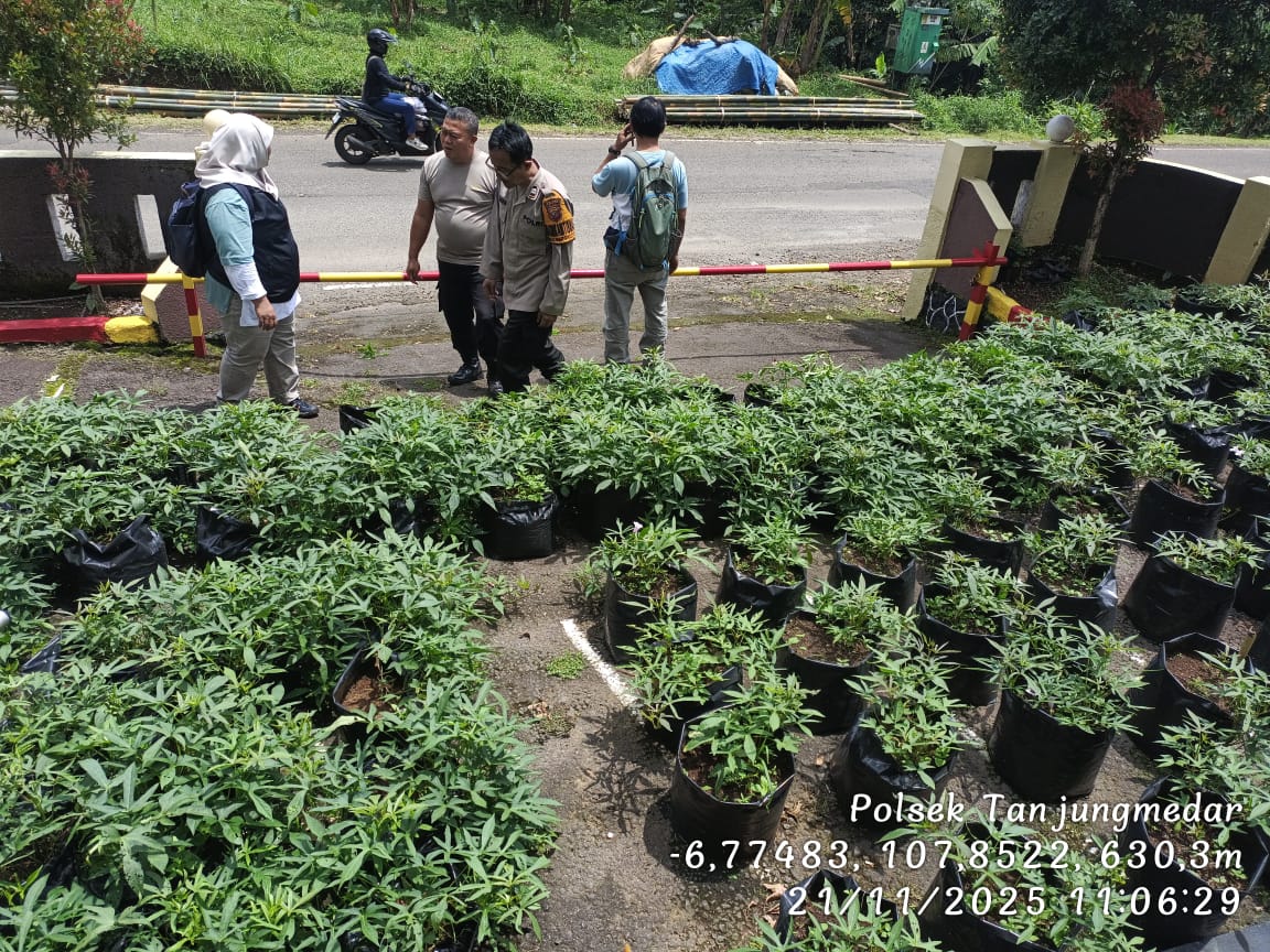 Sumedang ||BI Pada hari Jum’at tanggal 21 November 2025 pukul 11.06 WIB bertempat di halaman Mako Polsek Tanjungmedar telah berlangsung kegiatan pengontrolan dan pemeriksaan tanaman ubi Cilembu yang dilakukan oleh Kepala UPTD Pertanian dan Ketahanan Pangan Wilayah Tanjungmedar, Ibu Wawat, S.P., bersama staf Mali Ismail, S.P. Kegiatan pengecekan tersebut dilakukan dalam rangka monitoring perkembangan tanaman sekaligus evaluasi program Ketahanan Pangan yang sedang dijalankan oleh Polsek Tanjungmedar.