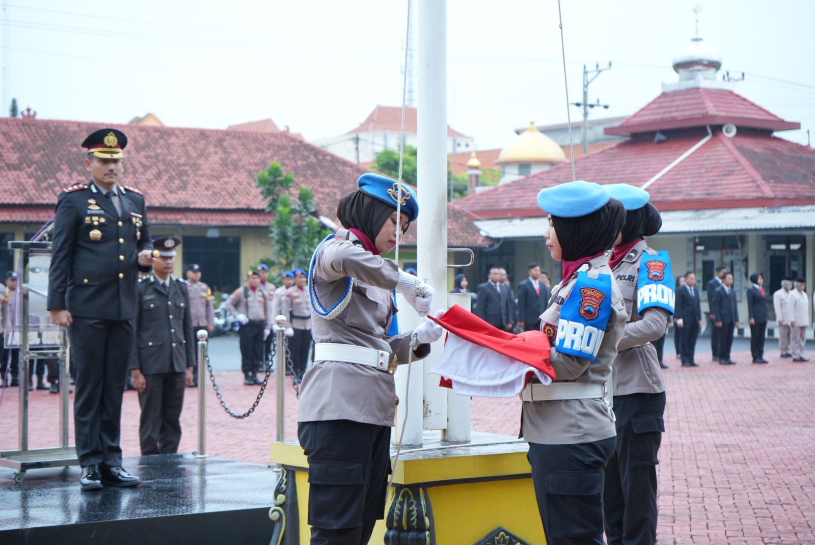 Kegiatan yang berlangsung dengan tertib dan penuh semangat kebangsaan ini diikuti oleh para pejabat utama Polres, personel Polri, dan ASN.