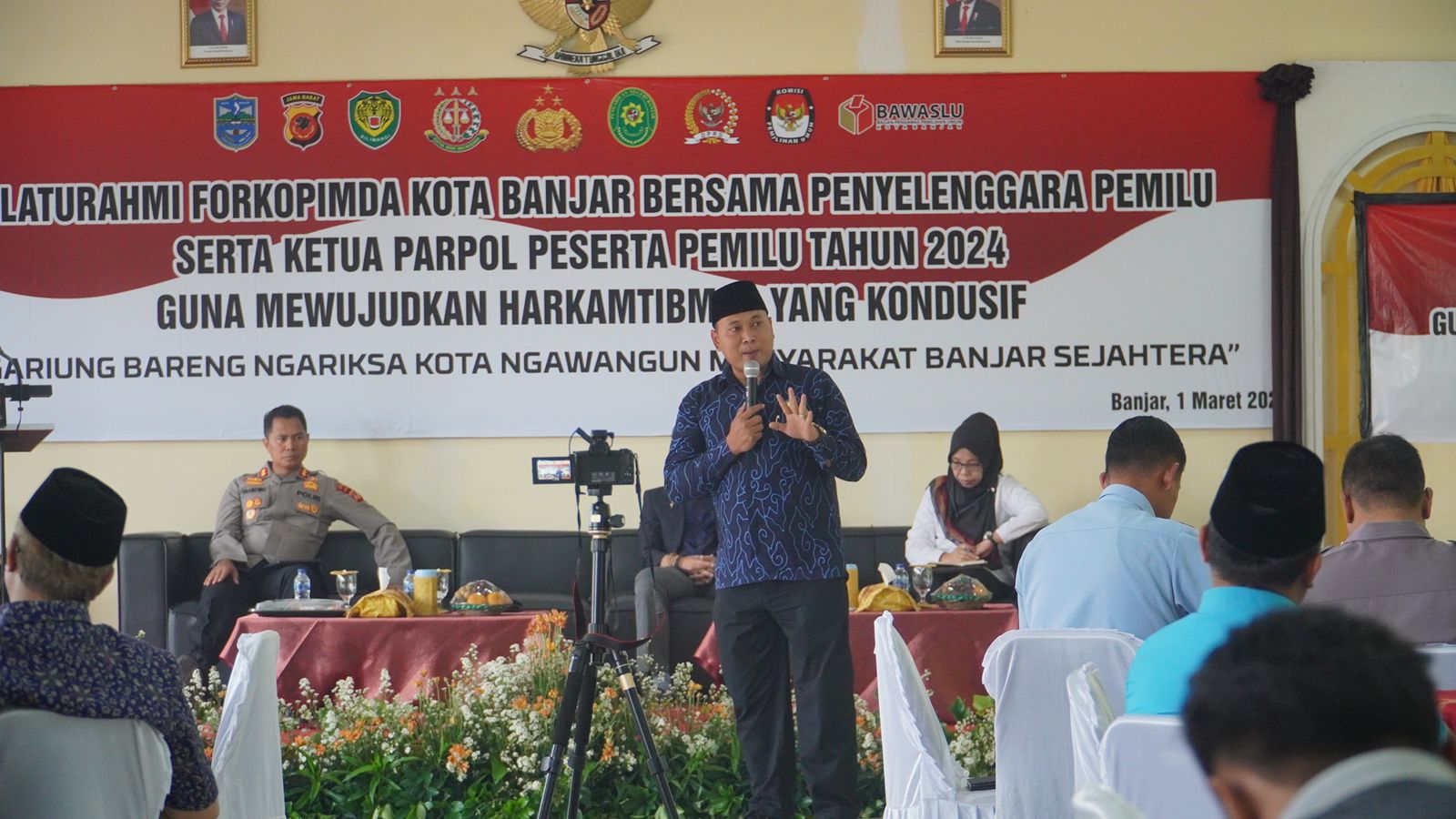 Polres Banjar || buserindonews.com – Berlokasi di Aula Presisi Polres Banjar, Kapolres Banjar AKBP Bayu Catur Prabowo, S.H.,S.I.K.,M.M. bekerja sama dengan Kesbangpol Kota Banjar menggelar acara Silaturahmi Forkopimda Kota Banjar Bersama Penyelenggara Pemilu serta Ketua Partai Politik Peserta Pemilu 2024 Guna Mewujudkan Harkamtibmas yang Kondusif, ‘Ngariung Bareng Ngariksa Kota Ngawangun Masyarakat Banjar Sejahtera. (01/03/2023)