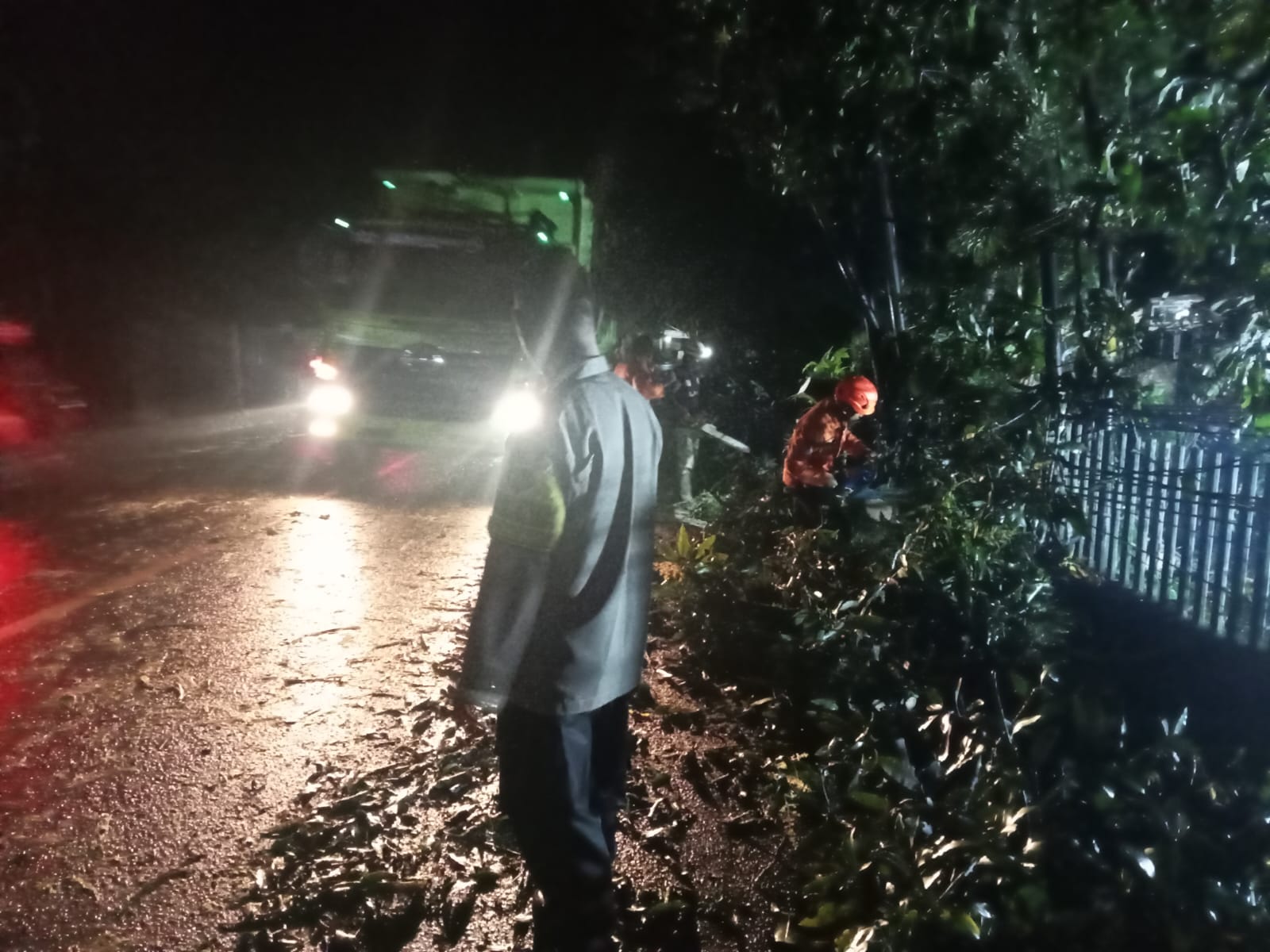 Mengetahui kejadian tersebut, Bhabinkamtibmas Desa Cibeureum Kulon Aipda Mardiono bersama Babinsa Serda Nedi segera turun ke lokasi untuk melakukan penanganan awal. Bersama unsur pemerintah desa, petugas BPBD Kabupaten Sumedang, petugas PLN wilayah Cimalaka, serta warga setempat, mereka melakukan evakuasi dengan memotong dan memindahkan batang serta ranting pohon yang menutup jalan.