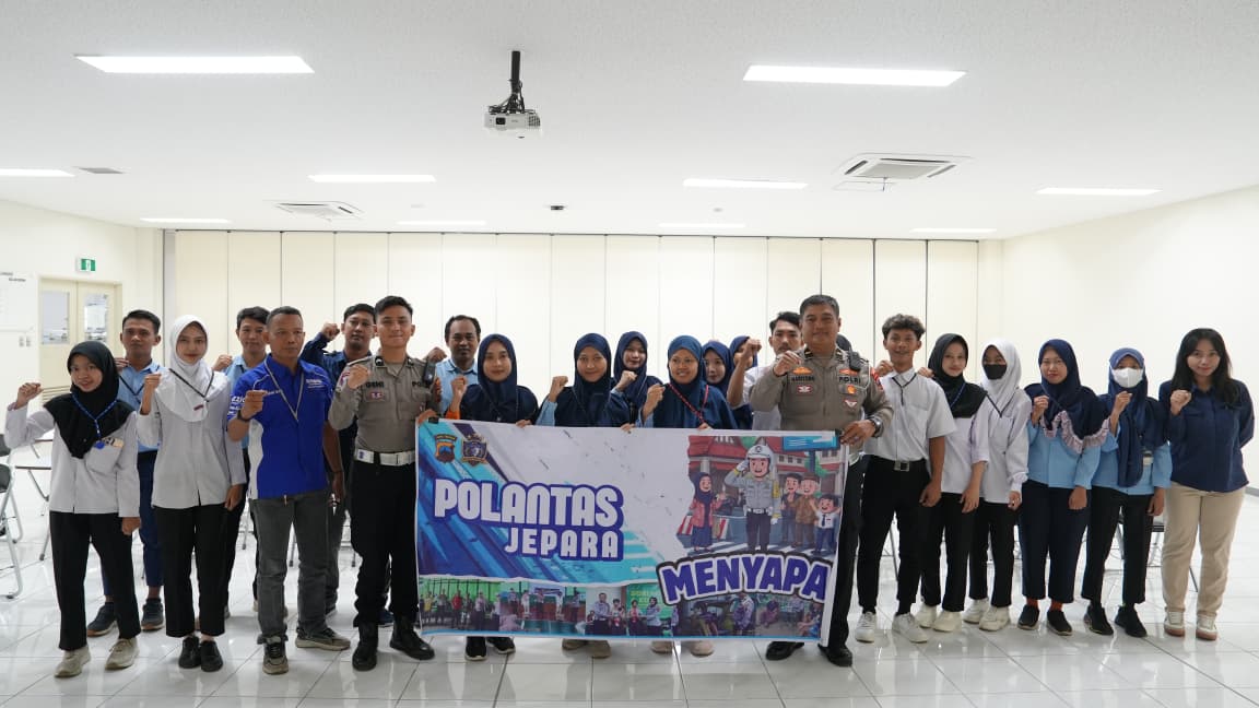 Melalui program ‘Polantas Menyapa’, petugas lalu lintas hadir memberikan sosialisasi safety riding kepada karyawan PT. Semarang Autocomp Manufacturing Indonesia – Jepara Factory (SAMI-JF) di Desa Sengonbugel, Kecamatan Mayong, Kabupaten Jepara, pada Kamis (18/12/2025).