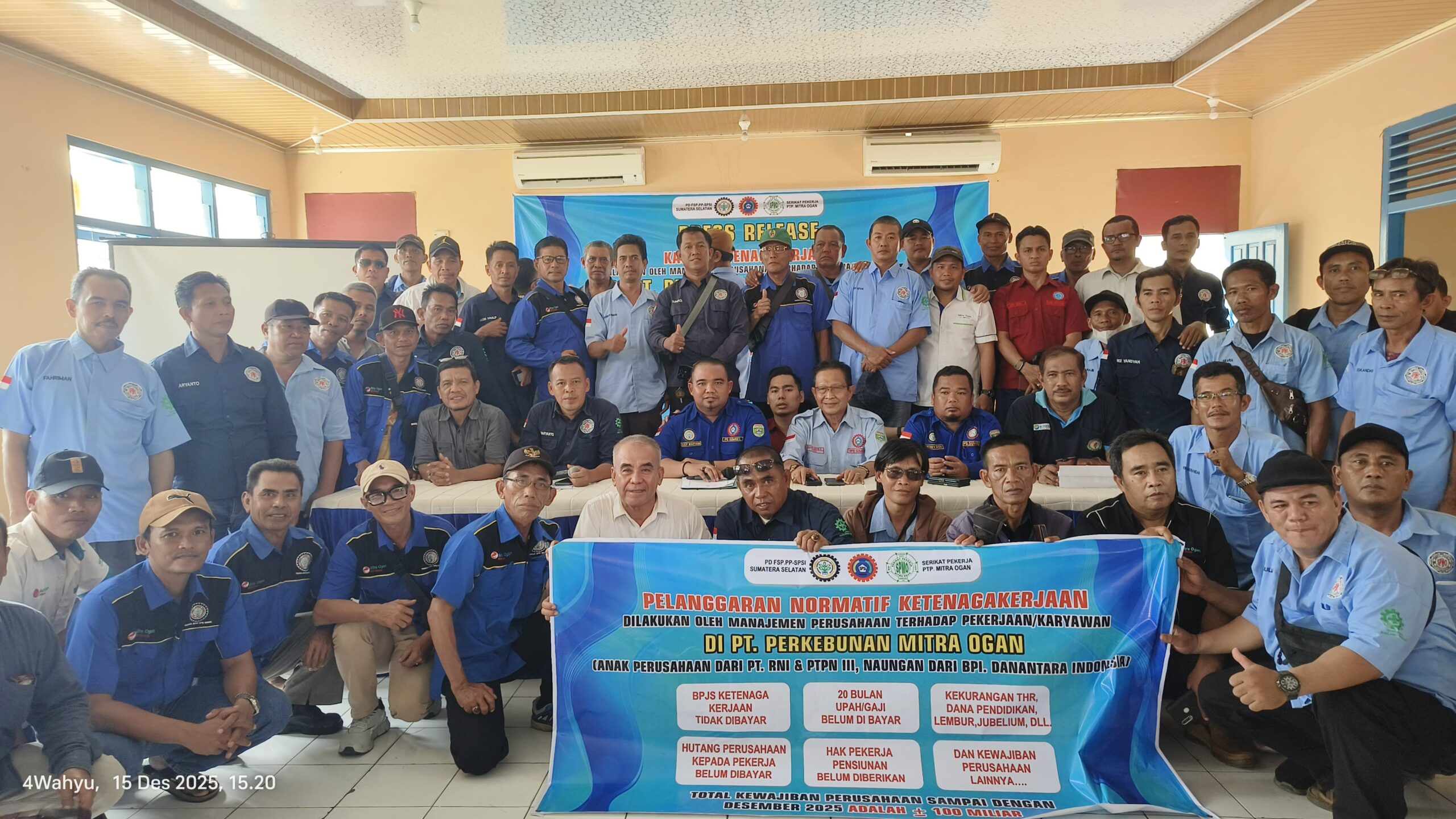 Pengurus Daerah Federasi Serikat Pekerja Pertanian dan Perkebunan – Serikat Pekerja Seluruh Indonesia (DPD KSPSI) Sumatera Selatan, mengadakan *Kegiatan Aksi Penyampaian Aspirasi dan Press Release Kasus Ketenagakerjaan di PTP. Mitra Ogan* di Gedung Aula WASNAKER OKU Raya, Baturaja, Kabupaten OKU.