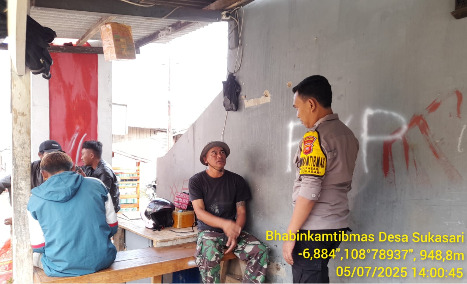 Sumedang ||BI Bripka Aria Pratama,Anggota Kepolisian yang bertugas Sebagai Bhabinkamtibmas Desa Sukasari yang selalu peduli dengan Kamtibmas, melaksanakan kegiatan Sambang dan silaturahmi terhadap pelaku usaha, para pemuda dan Warga Binaan Desa Sukasari, Kecamatan Sukasari, Kabupaten Sumedang. Sabtu 05/07/2025.
